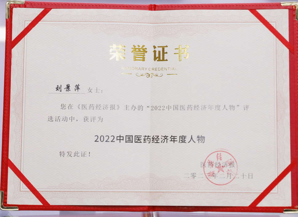 佰富彩药业集团董事长刘景萍当选“2022中国医药经济年度人物”